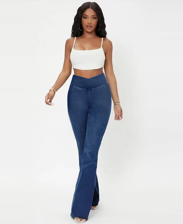 SALE 49% OFFđŸ”„High Waisted Crossover Pocket Stretchy Knit Casual Flare Jeans